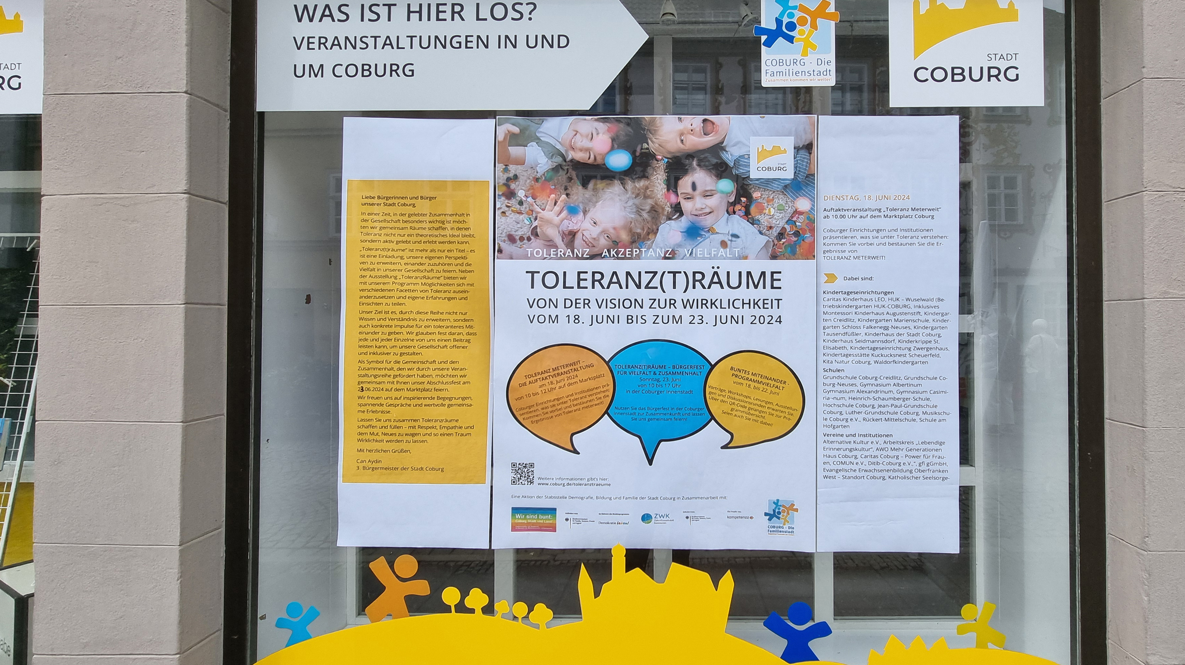 Toleranz(t)räume ist mehr als nur ein Titel - es ist eine Einladung unsere eigenen Perspektiven zu erweitern, einander zuzuhören und die Vielfalt in unserer Gesellschaft zu feiern. Neben der Ausstellung _ToleranzRäume" bieten wir mit unserem Programm Möglichkeiten sich mit verschiedenen Facetten von Toleranz auseinanderzusetzen und eigene Erfahrungen und Einsichten zu teilen (so die Grußworte 3. Bürgermeister).